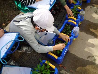 前回よりもどれだけ葉っぱが大きくなったかものさしを使って測りました。