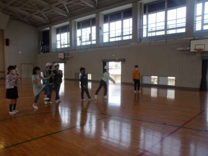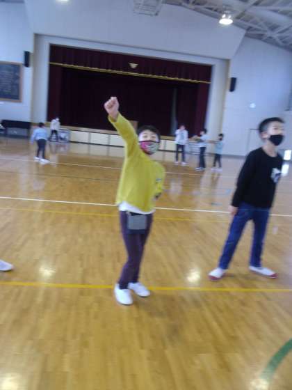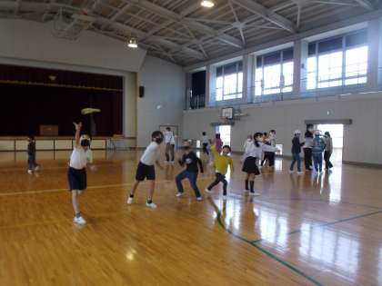 製作した飛行機を体育館で飛ばしました。グループごとに遠くまで飛ばせる方法を考えながら,飛ばしました。一番遠くに飛ばした時に,「よっしゃー!」とガッツポーズを見せ嬉しそうにしていました。