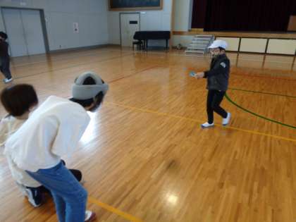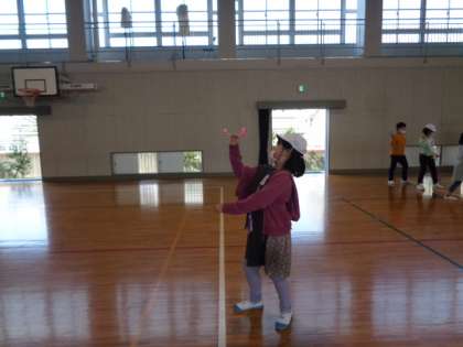 体育館でストロー飛行機を飛ばす練習をしました。