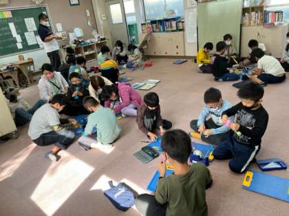 チャレンジフェスタのお話の後,ストロー飛行機作りをしました。