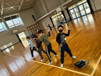 最後に,全員で誰が一番遠くまで飛んだか大会をしました!