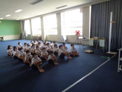 発育測定の前に,むし歯について絵本の読み聞かせをしていただきました。