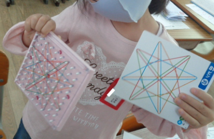 コツを伝えると、一人でできました!ほぼ合っています!すごい!