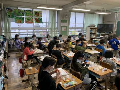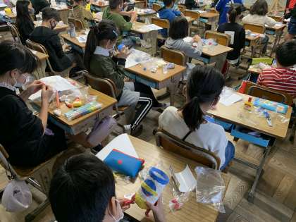 ねんどや持ってきたものを使ってペンケースを,作っています。設計図通りに作れるかな。