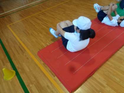 体育館での体育では,「マット運動」が始まりました。