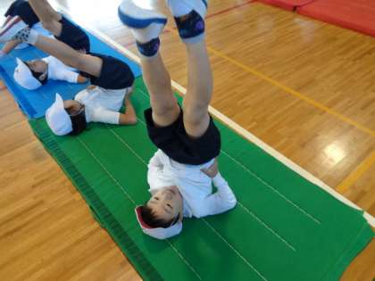 今日は,マットの上でだるま転がりをしたり,手をつく練習,腰を高く上げたりする練習を行いました。