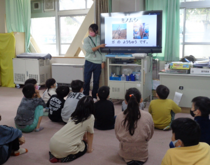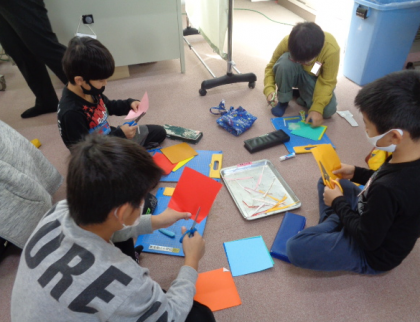 その後は製作です!折り紙でミノムシを作りました。昔の人の着ていた上着(雨具)である蓑に似ていることから、ミノムシと呼ばれるようになった経緯を知り、みんな驚いていました。