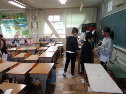 チェック表を持って,教室の掃除の様子を確認しました。