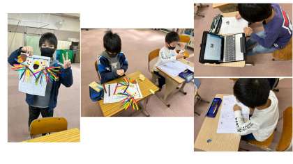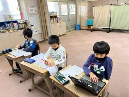 2年生は,漢字。 4年生は,タブレットで,都道府県調べ。 5年生は,11月のカレンダー作り。