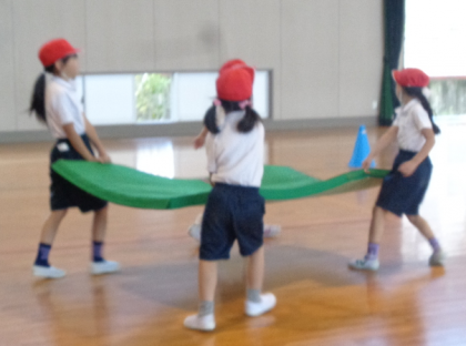 協力してマットを運んでいました。