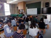 視力精密検査に向けて,教室で視力スクリーニングを行っていました。