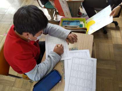かけ算の筆算や4年生の「面積」の学習に取り組んでいます。
