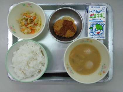 11月16日の給食は「ごはん、牛乳、ちゃんこ汁、堺のめぐみコロッケ、手作りソース、野菜ソテー」でした。