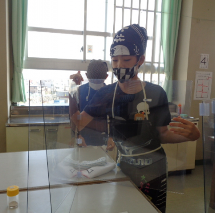 美味しそうなにおいが漂ってきました♪アクリルスタンドを用意して、感染症対策もばっちりです!