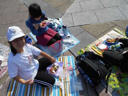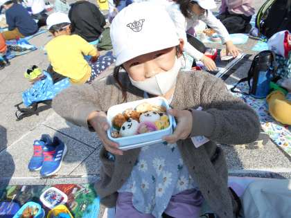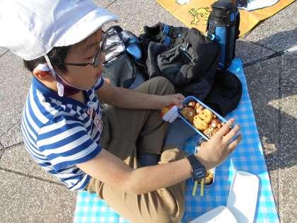 いっぱい体を動かしてお腹が空いていたので,お弁当箱をあけてニコニコ笑顔になっていました。
