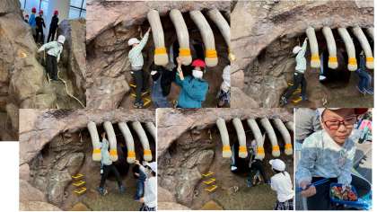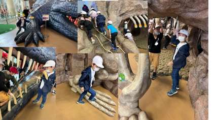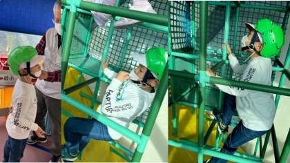 3階の恐竜やワニの遊具で遊んだり,4階からスタートして8階のゴールまでジャングルジムのような遊具の塔に登ったりと楽しんでいました!