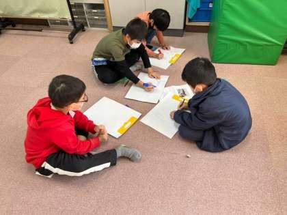 チャレンジフェスタの看板かき,練習をがんばりました!