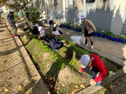 学習園の草取りもがんばりました!チンゲン菜が大きくなりつつあります!