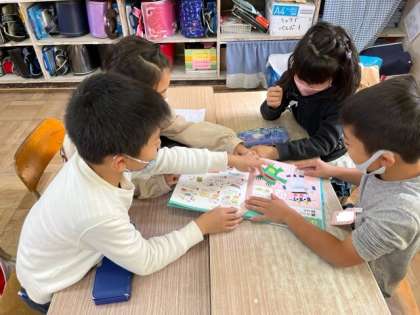 1年生をおもちゃランドに招待するために,班で何のおもちゃを作るかを相談しました!
