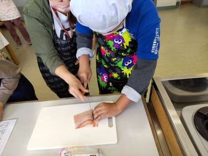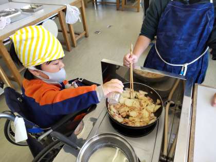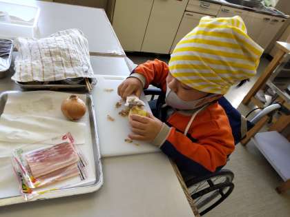 包丁で慎重にベーコンを切ったり,じゃがいもの皮をピーラーで剥いたりと初めての経験がたくさんありました。