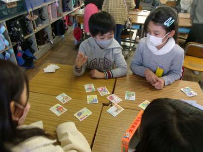 ことわざ調べが終わったので,ことわざカルタを班で行いました。