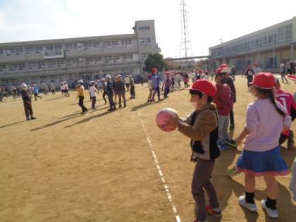 1年生も休み時間にドッジボールをするようになりました。