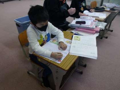 教科書を見ながら受けるテストをしました。