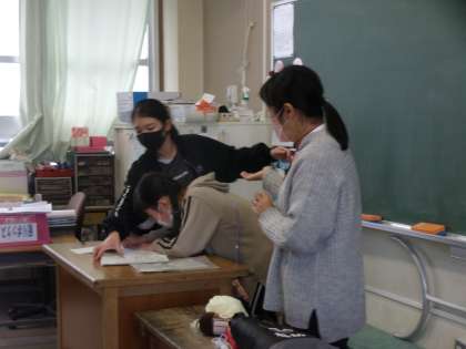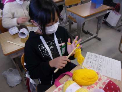 毛糸を使って,リリアン網のマフラーづくりに挑戦していました。コツを掴むと,どんどん進めていくことができていました。