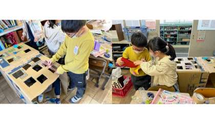 1年生を招待する「おもちゃランド」に向けて,おもちゃ作りをがんばっています!