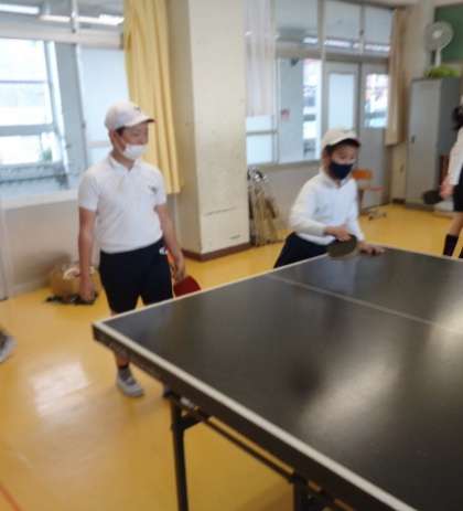 卓球クラブでは,4年生と6年生がペアを組んで試合を行っていました。