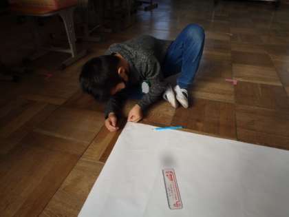 1平方メートルの中に座って,「遠足のシートより広いね。」と感想を言ったりしていました。