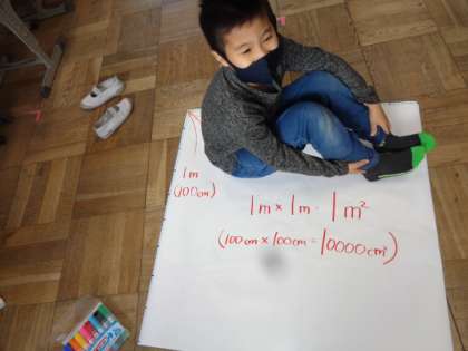 算数の「面積」の学習で,1平方メートルを作りました。