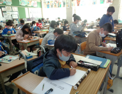 はとぶえで、学用品や楽器の絵を描きました。