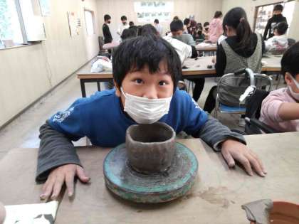 午前中は宗陶苑で焼き物体験をしました。みんなの真剣な顔を見ていると,いい作品を作りたい気持ちが伝わります。登り窯も初めてみました。