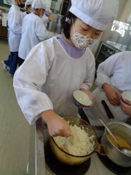 給食後のご飯とみそ汁でしたが,しっかり食べていました。