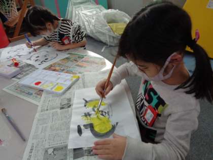 黒板に書いてあるカレンダーを画用紙に写していきました。