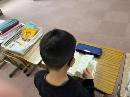 2年生が,4年生の漢字の学習の刺激を受けて,音読み,訓読み,部首を漢字辞典で調べ始めました!