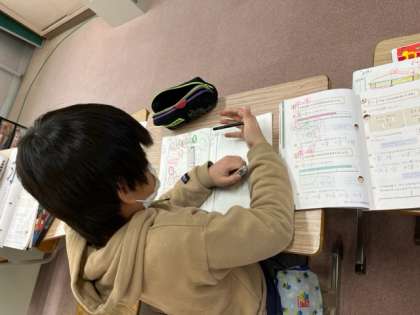 1月13日 なかよし学級 2年と4年の漢字,4年の算数