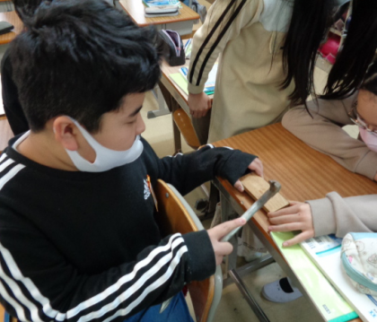くぎを打ったり、抜いたりしています。てこの原理で簡単に抜けました!
