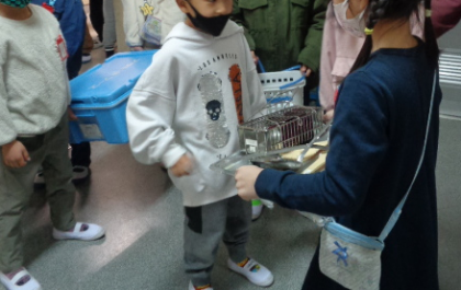 給食当番も頑張っています。先頭の挨拶にも慣れてきました。