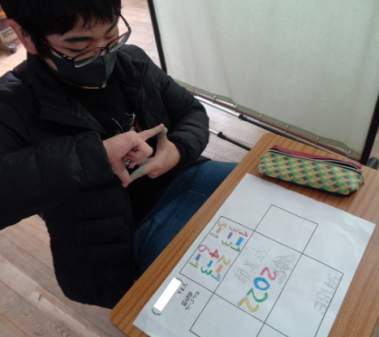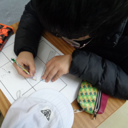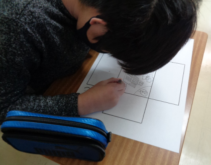 オルゴールの下書きで、校章や今までのクラスを書いています。いい思い出になるね。