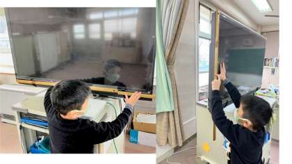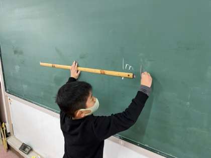 黒板に1メートルの長さを予想して印をつけました!確かめてみると,数センチ違いでした!