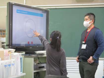 円の中に三角形を書く方法を考えたり,角の大きさを比べることができました。