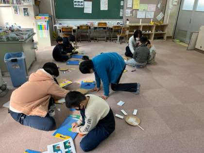 次に,「しあわせをかき集める熊手をつくろう!」というめあてで,紙皿と割り箸で熊手を作りました!