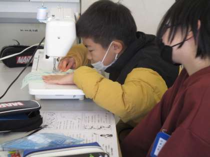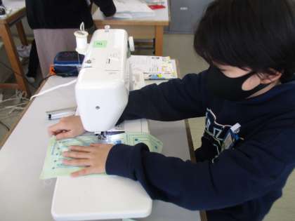 ミシンに上糸と下糸をかけて,練習布に実際に縫っていきました。