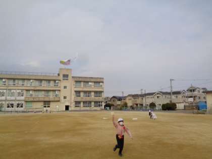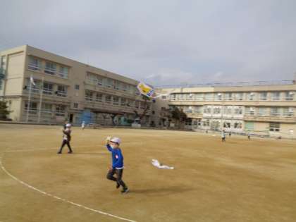 今日は図工で作ったたこをあげました。