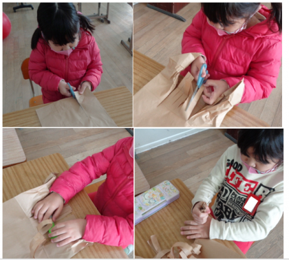 2.中央は細かく切り、丸める(ペン等に巻きあとをつける)