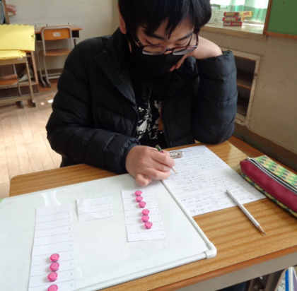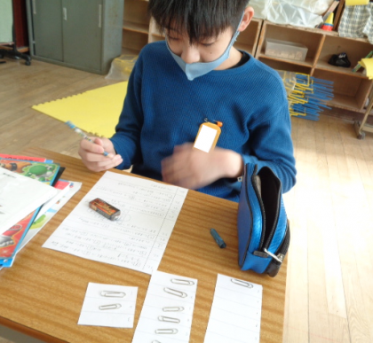具体物で操作することで、少しずつ理解してきたようです。