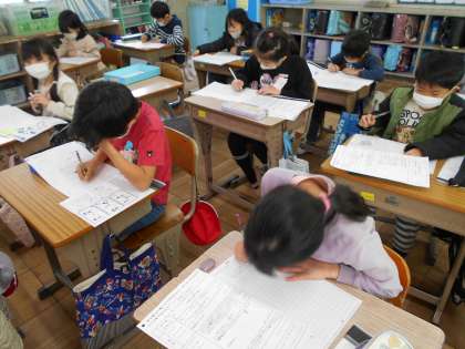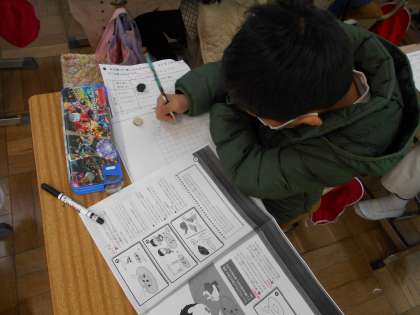 「おにごっこ」の文章を読んで,あそびの説明の仕方を学びました。次は,自分がやってみたい遊びを選んで,みんなに紹介します。今日はその紹介文を書きました。