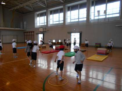 カンガルーになりきって足をそろえて飛び乗ったり,